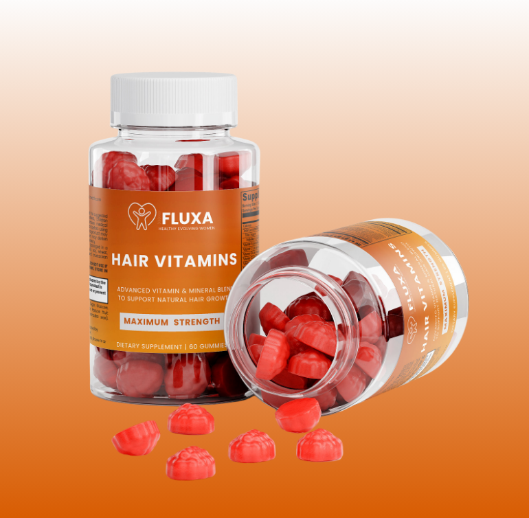 Delicious and easy to take, FLUXA Hair Vitamins are gluten-free, and made with clean ingredients. Perfect for women experiencing stress-related or thyroid-linked thinning—or anyone who wants thicker, stronger-looking hair from the inside out.