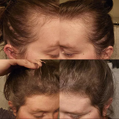 The photos honestly say it all. My thyroid has been “borderline” for years, and the shedding was nonstop. I’d see clumps in the shower and felt like I was losing my hairline. After taking FLUXA for a little over two months, the shedding finally slowed. The baby hairs growing back around my temples are unbelievable. I’m so relieved I stuck with it.